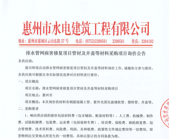 惠州市水電建筑工程有限公司成立于一九六四年四月,隸屬惠州市水務集團有限公司,是一家國有綜合性施工企業,主營水利水電工程、房屋建筑、市政工程等施工業務。公司擁有水利水電工程施工總承包一級、建筑工程施工總承包一級、市政公用工程施工總承包一級、公路工程施工總承包三級,公路路基、路面及建筑裝修裝飾專業承包二級,環保工程、機電安裝、河湖整治、輸變電工程專業承包三級等經營資質……